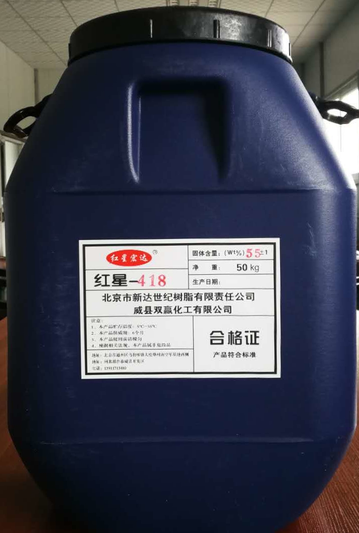 我公司研究人員經(jīng)過不懈努力,研制出紅星—418新型乳液,該產(chǎn)品添加了特殊功能單體,使產(chǎn)品在紅星—400的基礎(chǔ)上,和易性更好,產(chǎn)品強度,耐水性均大大提高。
